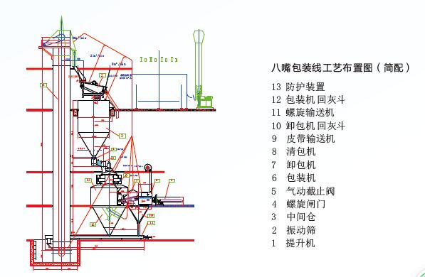 漏灰控制: 包装机及收尘设计合理、密封性好;在保证灌装的流态化条件下,灌装控制单元最大限度地减少叶轮箱、出料嘴的充气流量,以保证最佳的包装速度和水泥袋缝口处最少的粉尘泄露。